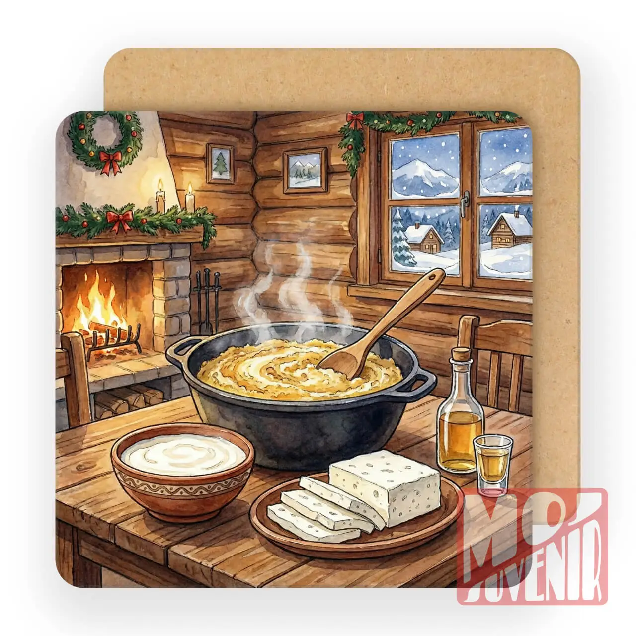 Drveni podmetač sa motivom tradicionalne durmitorske hrane — pravi lokalni “štih” Žabljaka.